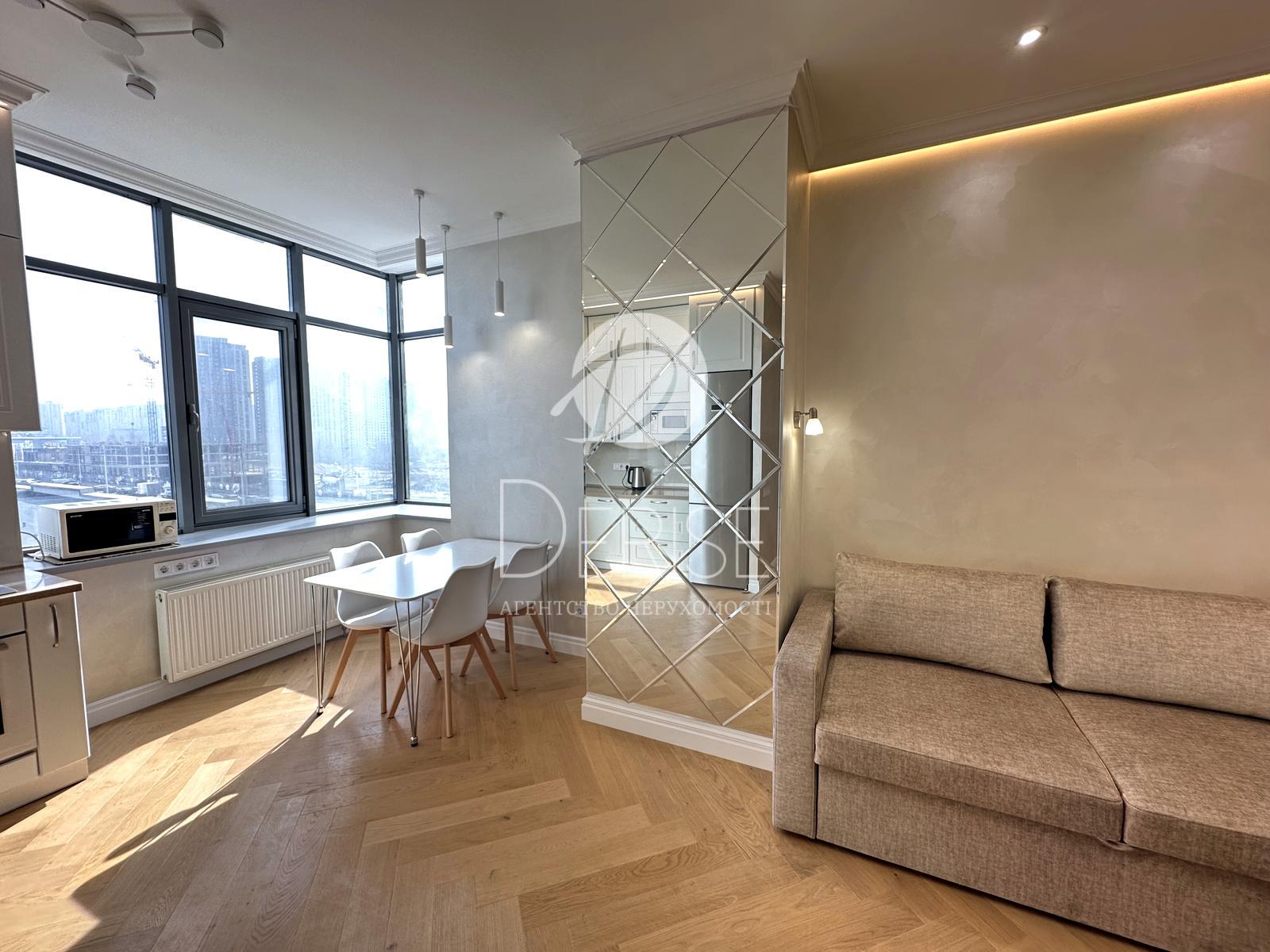 Пропонується до продажу простора 1-кімнатна квартира (63 м²) з дизайнерським ремонтом у ЖК RiverStone, Київ.