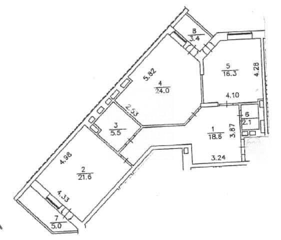 Велика кухня-вітальня 24 м2, дві роздільні кімнати (21 и 17 м2).