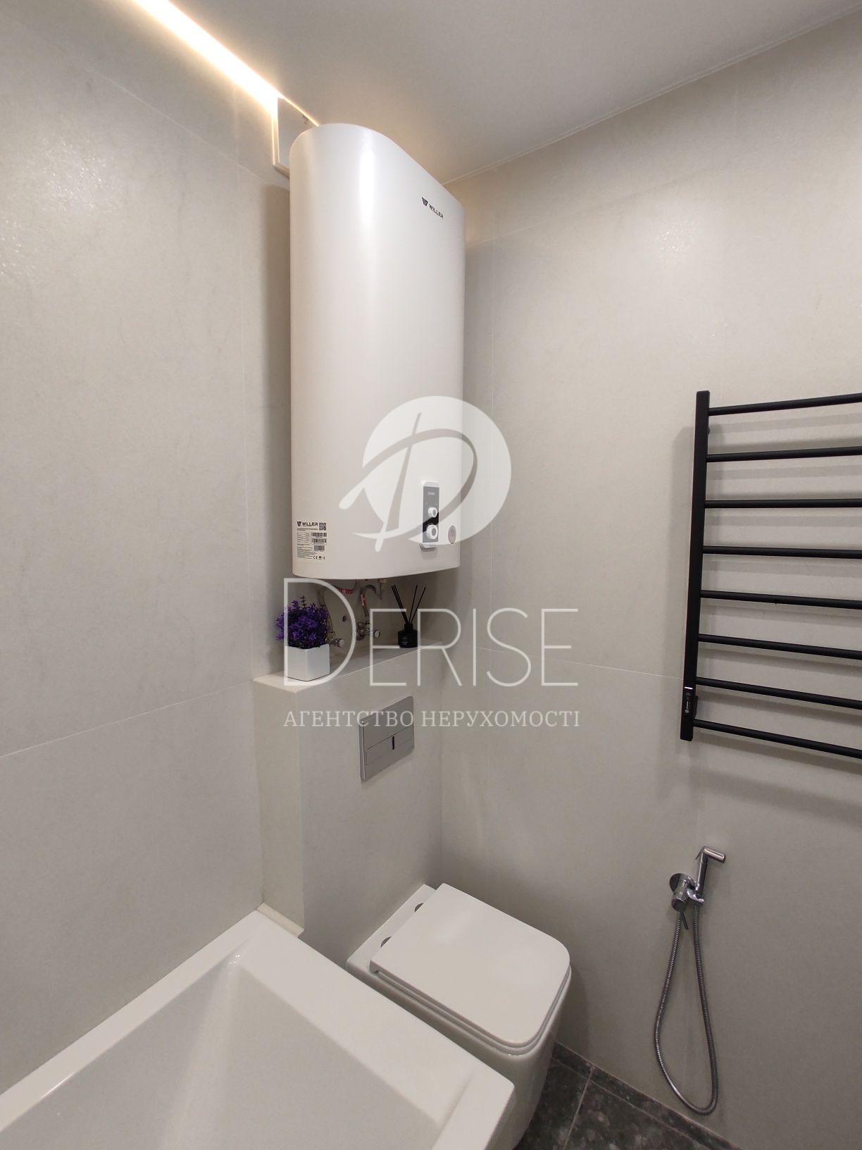 Санвузол: ванна з підсвіткою, інсталяція, бойлер 80 л (сухі тени), пральна та сушильна машини — повний комплект.