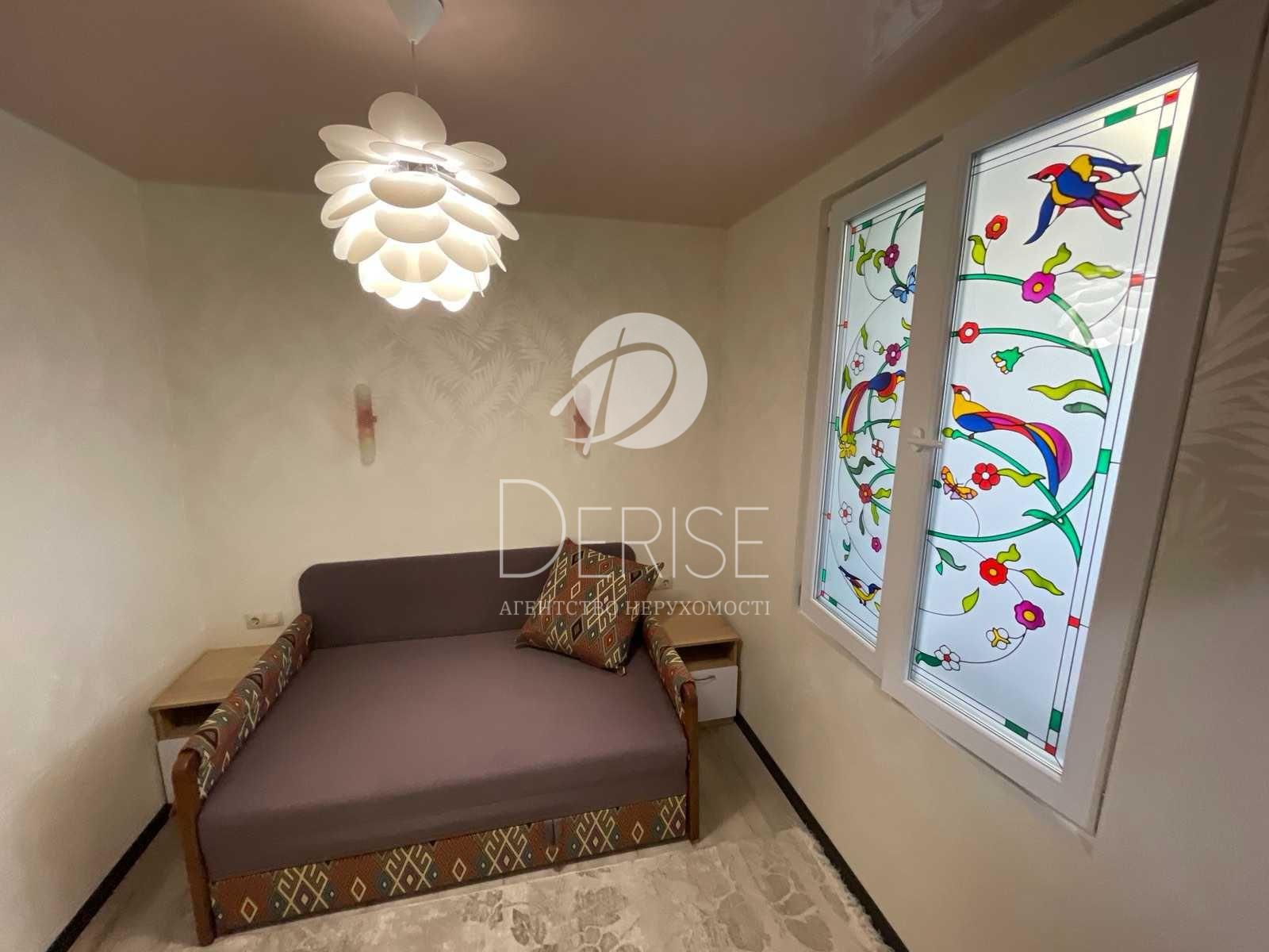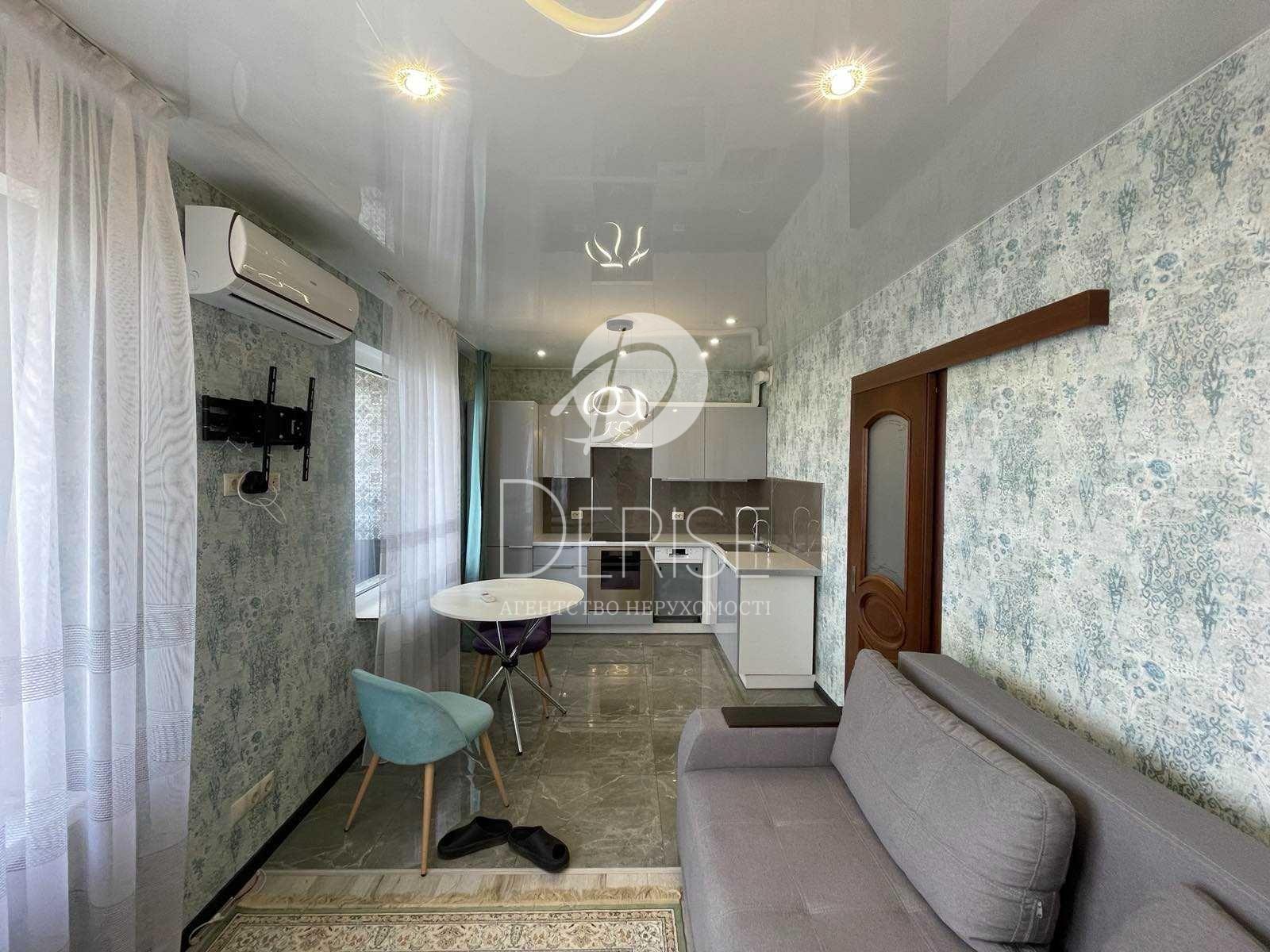 Перепланована в євродвушку: окрема спальня кухня-вітальня.